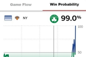 本場比賽綠軍一度領(lǐng)先尼克斯20分,贏球概率一度高達(dá)99%!