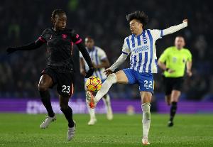 在該場比賽的第27分鐘,布萊頓維爾布魯根大腳開球,三笘薰世界級的完美連停帶卸,隨后內(nèi)切一步晃過查洛巴,一腳兜射破門。
