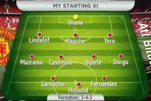曼晚預(yù)測(cè)曼聯(lián)首發(fā):奧納納;林德洛夫、馬奎爾、約羅;馬茲拉維、卡塞米羅、烏加特、多古;加納喬、B費(fèi)、霍伊倫