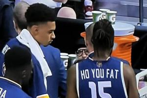 值得一提的是,2021-2023年,何佑發(fā)效力于大都會(huì)92,在此期間他與文班亞馬當(dāng)過隊(duì)友。而正是因?yàn)樵诖蠖紩?huì)92的效力經(jīng)歷,給了何佑發(fā)走紅的機(jī)會(huì)。2022年,文班亞馬所在的大都會(huì)92受邀與NBA發(fā)展聯(lián)盟點(diǎn)燃隊(duì)進(jìn)行了一場表演賽,當(dāng)時(shí)身為狀元大熱的文班亞馬是毫無疑問的焦點(diǎn)人物,不過何佑發(fā)因?yàn)樽约邯?dú)特的名字險(xiǎn)些搶走文班亞馬的風(fēng)頭,因?yàn)镠o You Fat直譯過來的意思是“婊子你真胖”(如果按照音譯,可能應(yīng)該翻譯成“史蒂夫-侯尤法特”)。
