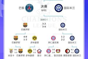 本賽季歐冠淘汰賽,國(guó)米先后淘汰德甲第一拜仁、西甲第一巴薩,決賽將戰(zhàn)法甲第一巴黎。