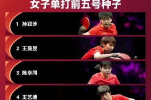 女單前5號(hào)種子選手分別為:1-孫穎莎、2-王曼昱、3-陳幸同、4-王藝迪、5-張本美和。