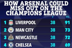 體育資訊05月08日訊 太陽(yáng)報(bào)撰文表示,歐冠被淘汰后,阿森納的噩夢(mèng)沒(méi)有結(jié)束,他們?nèi)钥赡軣o(wú)緣下賽季歐冠資格。