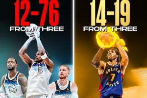 希爾德近兩場(chǎng)三分19中14,森林狼全隊(duì)近兩場(chǎng)三分共76中12。