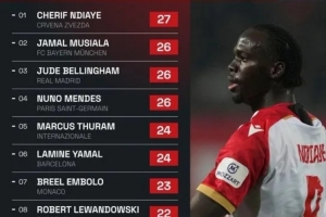 1.謝里夫-因迪亞耶(貝爾格萊德紅星)— 27次