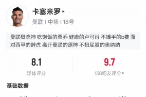 體育資訊5月9日訊 歐聯(lián)杯半決賽次回合,曼聯(lián)4-1畢爾巴鄂競技??ㄈ琢_首發(fā)出戰(zhàn),貢獻(xiàn)1粒進(jìn)球,送出7次搶斷,還有3次解圍,評(píng)分8.1。