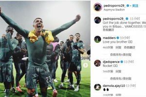 波羅寫道:“我們一起完成了任務(wù),畢爾巴鄂見,加油?。?!”