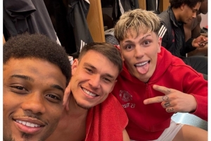 因傷缺席的阿瑪?shù)律缑綍癯雠c烏加特、加納喬的合照,并調(diào)侃道:“曼聯(lián)永遠(yuǎn)不會(huì)放棄,祝賀烏加特打進(jìn)你那該死的進(jìn)球(烏加特歐戰(zhàn)首球),加納喬錯(cuò)失那個(gè)機(jī)會(huì)氣死人了,你讓我們心痛?!?/p>