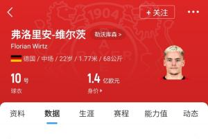 而目前22歲的維爾茨德轉(zhuǎn)身價(jià)為1.4億歐。吧友們認(rèn)為維爾茨最終的轉(zhuǎn)會(huì)費(fèi)會(huì)是多少?