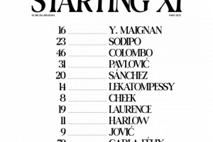 AC米蘭首發(fā):16-Y-邁尼昂、23-索迪波、46-科隆博、31-帕夫洛維奇、20-桑切斯、14-萊卡湯佩西、8-奇克、19-勞倫斯、11-哈羅、9-約維奇、79-卡拉-菲利克斯