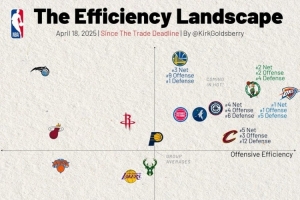 橫軸代表進(jìn)攻效率、縱軸代表防守效率