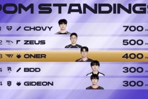 目前Oner在POM榜單獨(dú)占第三位,僅次于GEN中單Chovy的7次系列賽MVP和Zeus的5次系列賽MVP。