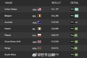 由于德祥、莫家蝶、鄭馳宇、劉英蘭組成的中國隊(duì)跑出3分19秒05,排名小組第六。