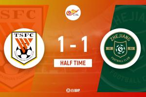 上半場補(bǔ)時4分鐘。半場戰(zhàn)罷,泰山1-1浙江。