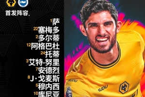 英超聯(lián)賽第36輪,狼隊(duì)vs布萊頓首發(fā)出爐!