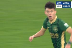 比賽第69分鐘,王鈺棟破門梅開二度,浙江2-3落后泰山!王鈺棟近7場7球,本賽季8球并列射手榜榜首!