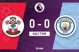 上半場傷停補(bǔ)時2分鐘,半場結(jié)束,曼城暫0-0南安普頓。