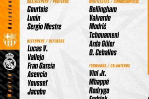 前鋒:7-維尼修斯、9-姆巴佩、11-羅德里戈、16-恩德里克、21-迪亞斯、維克托-穆尼奧斯