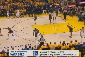 首節(jié)勇士全隊三分1中0,2013年以來季后賽單節(jié)三分出手最低!