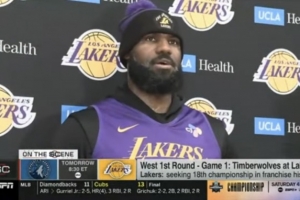 體育資訊4月19日訊 今日,湖人前鋒詹姆斯在訓練后接受了采訪。