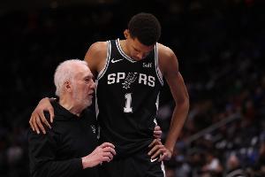 盡管陣容潛力巨大,這支球隊(duì)仍存在諸多不確定性。首先就是文班亞馬的傷情,他在生涯首次入選全明星后被診斷出右肩存在血栓,下賽季復(fù)出時(shí)間尚未確定。由于賽季提前報(bào)銷,他與??怂箖H共同出戰(zhàn)5場比賽(合計(jì)120分鐘)。在這有限的樣本中,馬刺每百回合失分達(dá)118.3分,凈效率為-4.3。另一個(gè)懸念是NBA現(xiàn)役執(zhí)教時(shí)間最長的主教練波波維奇的未來,他在去年11月2日遭遇輕度中風(fēng)后,本賽季由助理教練米奇-約翰遜臨時(shí)接任,至今未宣布未來的計(jì)劃。
