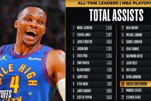 至此,威少季后賽生涯總助攻數(shù)來到923次,超越莫里斯-奇克斯,上升至NBA歷史第20位,上一位是凱文-約翰遜。