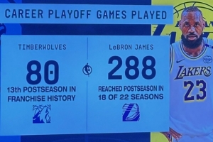 詹姆斯打過18次季后賽,共288場;森林狼隊史13次季后賽,共80場