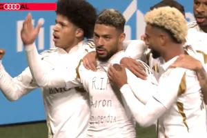 比賽第90分鐘,洛杉磯FC球員布安加主罰點球破門。進球后布安加掀開球衣并飛吻,展示里面哀悼老鄉(xiāng)布彭扎的衣服。