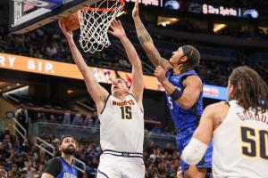 本賽季常規(guī)賽,班凱羅場(chǎng)均可以貢獻(xiàn)25.9分7.5板4.8助0.8斷0.6帽;約基奇場(chǎng)均29.6分12.7板10.2助1.8斷0.6帽。