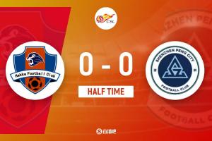 上半場比賽結(jié)束,梅州客家0-0深圳新鵬城。