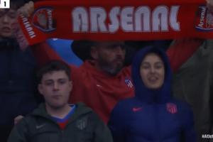 第25分鐘,阿爾瓦雷斯點(diǎn)射扳平后,轉(zhuǎn)播鏡頭給到了看臺上的球迷。有馬競球迷高舉著阿森納圍巾。