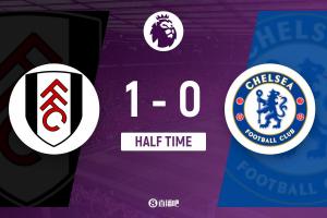 上半場(chǎng)傷停補(bǔ)時(shí)1分鐘,半場(chǎng)結(jié)束,切爾西暫0-1富勒姆。