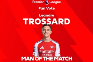 本場(chǎng)比賽特羅薩德梅開(kāi)二度表現(xiàn)出色,賽后他也當(dāng)選英超官方球迷票選全場(chǎng)最佳球員。