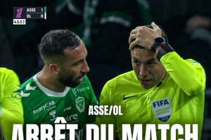 體育資訊4月21日訊?法甲第30輪,圣埃蒂安主場對陣里昂。在助理裁判遭投擲物襲擊后,當值主裁弗朗索瓦-萊泰西耶要求所有球員返回更衣室。