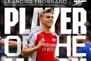 體育資訊4月21日訊 英超第33輪比賽,特羅薩德梅開二度,阿森納客場(chǎng)4-0伊普斯維奇。