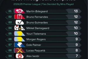 據(jù)Squawka統(tǒng)計(jì),厄德高本賽季英超完成13次直塞傳球,所有球員中最多。厄德高本賽季英超進(jìn)攻三區(qū)成功傳球543次,中場球員中最多。