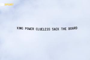 一些萊斯特城球迷籌集資金,在本場(chǎng)比賽開(kāi)始之前用飛機(jī)拉橫幅,對(duì)俱樂(lè)部高層表達(dá)不滿(mǎn),橫幅上面寫(xiě)著:“王權(quán)無(wú)能,解雇董事會(huì)?!?/p>