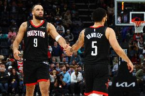 本場(chǎng)比賽,火箭首發(fā)為:范弗里特、杰倫-格林、狄龍-布魯克斯、阿門(mén)-湯普森、申京。