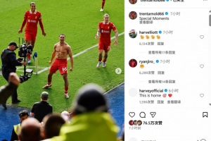 本場(chǎng)比賽阿諾德替補(bǔ)登場(chǎng)打進(jìn)制勝球,賽后他也在個(gè)人社媒曬出進(jìn)球后脫衣慶祝照片,配文寫道:“特殊的時(shí)刻!”