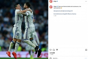 西甲官方社媒曬出兩人在皇馬的擁抱合照并配文:每一個(gè)擁抱與重逢的背后,都有一段故事。