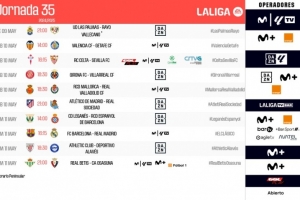 體育資訊4月21日訊 西甲官方公布第35輪比賽時(shí)間,巴薩vs皇馬5月11日周日22:15進(jìn)行,馬競(jìng)11日凌晨3點(diǎn)出戰(zhàn)。