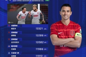 中超聯(lián)賽官博寫道:“跑動榜!辣個男人回來了!在對陣上海海港的比賽中,成都蓉城周定洋的跑動距離達(dá)到13321米,位列榜單第一。”
