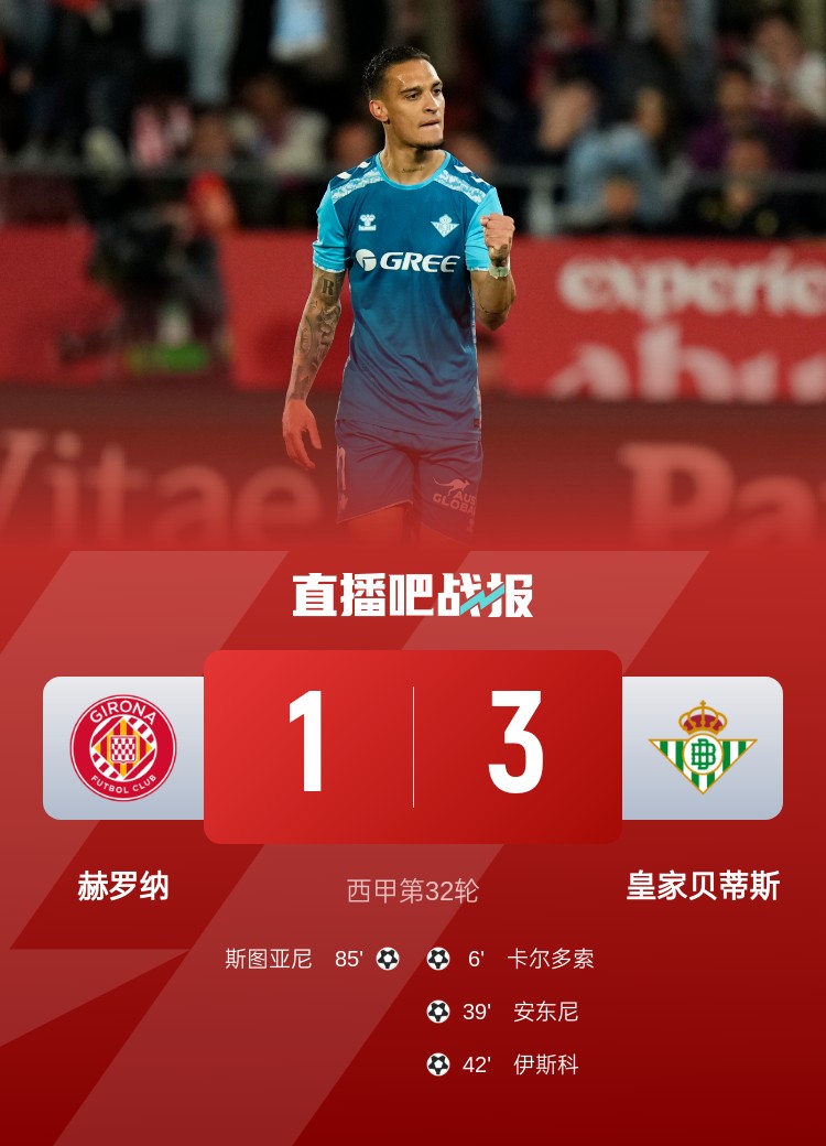 在本輪1-3不敵貝蒂斯后,赫羅納本賽季各項(xiàng)賽事整體戰(zhàn)績?yōu)?1勝8平23負(fù)。