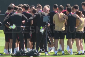 在特爾施特根的拉扯下,伊尼亞基不情愿地向前挪了兩步,勉強靠近弗里克所在區(qū)域。開放的前15分鐘訓練畫面捕捉到了這一幕。訓話結束后,特爾施特根主動與什琴斯尼交談,而佩尼亞則留在原地與弗里克團隊的一名成員對話。