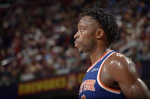 此役尼克斯球員阿努諾比外線手感冰涼,出場42分鐘10投4中,三分4中0、罰球2中2拿到10分5籃板2助攻2搶斷,正負(fù)值-5。