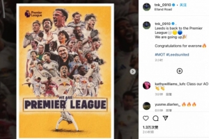 利茲聯(lián)中場、日本國腳田中碧今日更新社媒,曬出球隊升英超的海報,并配文寫道:“利茲聯(lián)重回英超聯(lián)賽,我們更上一個臺階。祝賀這里的每一個人?!?/p>