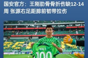 1個(gè)月前,國安曾發(fā)布傷情公告稱,王剛在熱身賽中肋骨骨折,預(yù)計(jì)恢復(fù)周期12-14周。