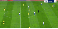 第21分鐘,西海岸左側(cè)過(guò)頂長(zhǎng)傳,鄭錚冒頂,阿齊茲近在咫尺的單刀機(jī)會(huì)掃射打高。