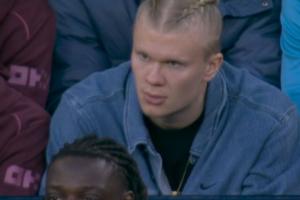 體育資訊04月23日訊 曼城vs維拉,上半場轉(zhuǎn)播鏡頭給到看臺上的哈蘭德!魔人換人新發(fā)型!