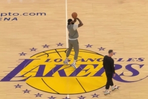 體育資訊4月23日訊 今日,NBA官方Instagram曬出湖人前鋒詹姆斯提前到場(chǎng)完成賽前投籃熱身的集錦。